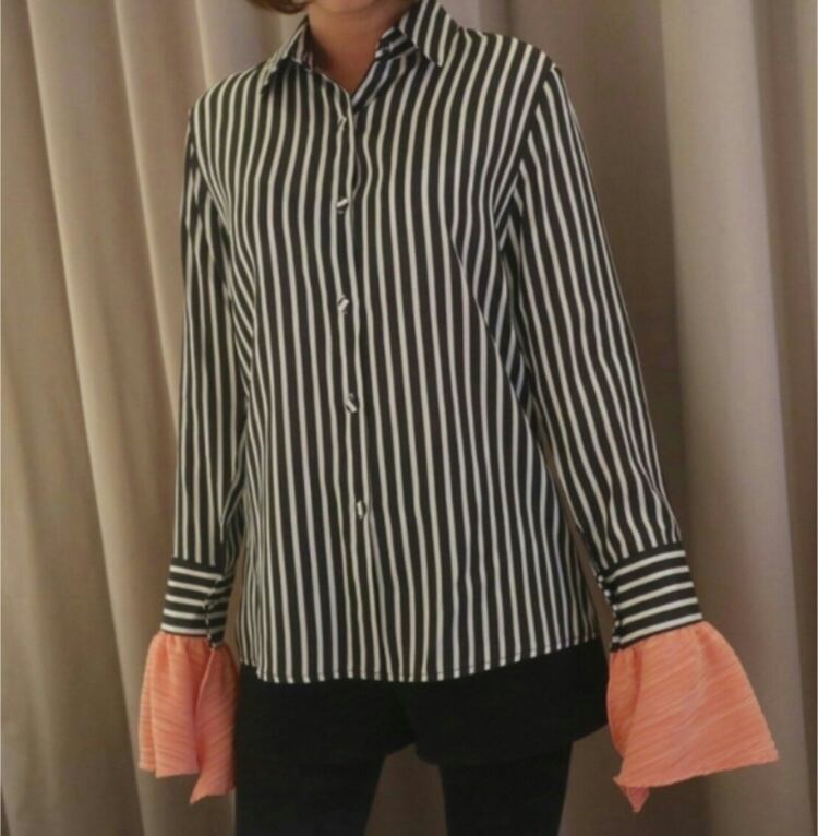 クールなシャツですが、袖がネオンカラーになっており、おしゃれ度UP☆
