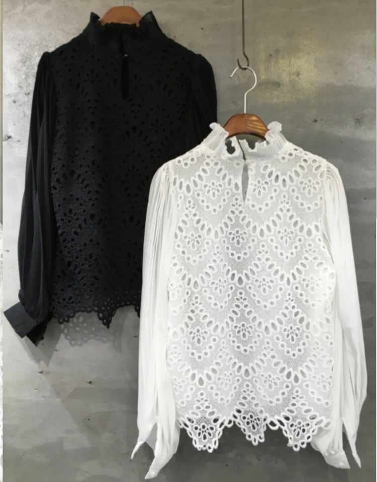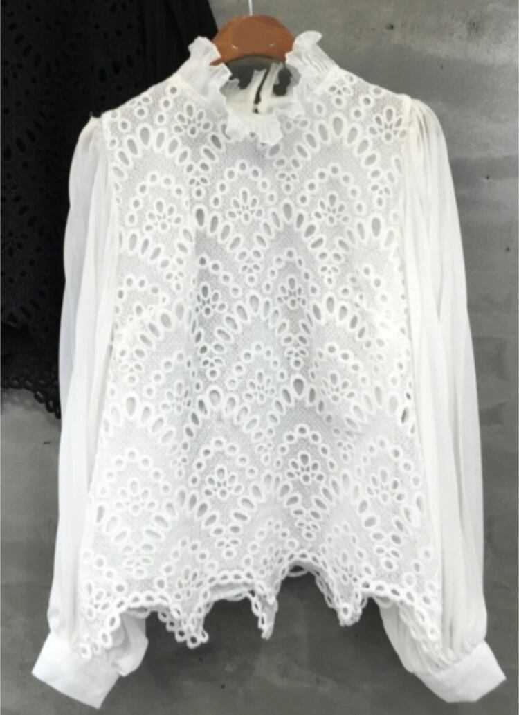 シャツ シンプルシャツ スカラップ 刺繍